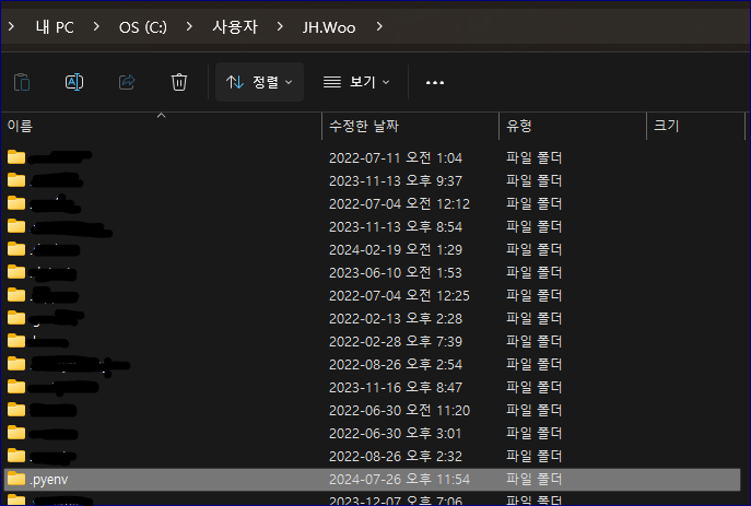 실행시키면 아래와 같은 폴더가 생성됩니다. (저의 Profile 은 JH.Woo 입니다.)