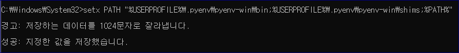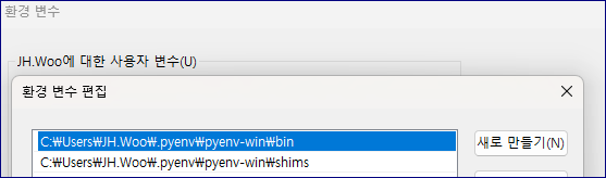 pyenv-win의 실행 파일이 시스템의 경로에 포함되도록 환경 변수를 설정합니다.