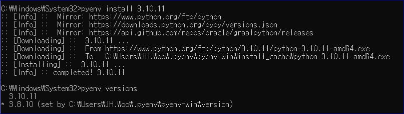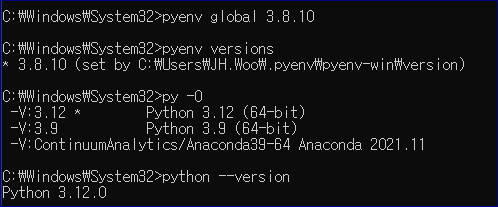 이제 pyenv-win을 사용하여 Windows 환경에서 Python 버전과 가상환경을 쉽게 관리할 수 있게 되었습니다.