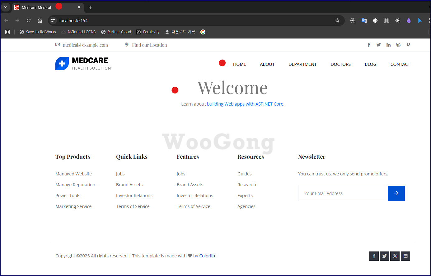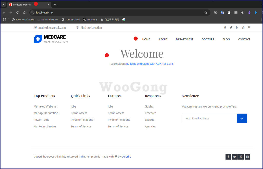 이번 편에서는 "Medcare" template 기반의 MVC Web Application에 공통 Layout인 _Layout.cshtml 파일을 수정하여 Layout 을 적용하는 과정을 살펴봤습니다. 깊이 살펴보아야 할 기본 내용은 많습니만 진행과정을 단순하게 하여 WebSite 제작에 쉽게 접근하도록 구성해 봤습니다. 내용이 길어 Header와 Footer를 적용하고, CSS와 JavaScript 파일을 분리하는 과정은 다음 편에서 살펴보겠습니다.
