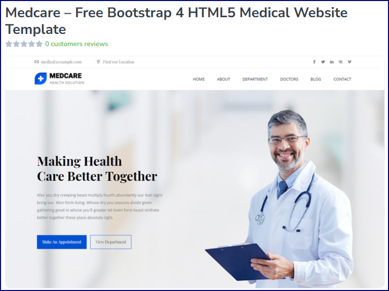 이번 3편에서는 본격적으로 Website의 뼈대가 될 HTML 파일의 구조를 파악하는 시간을 가져보려 합니다. 우리가 사용할 Template은 Themewagon.com에서 제공하는 "Medcare"라는 Medical Website 무료 Template입니다. Download는 여기에서 받으실 수 있습니다.